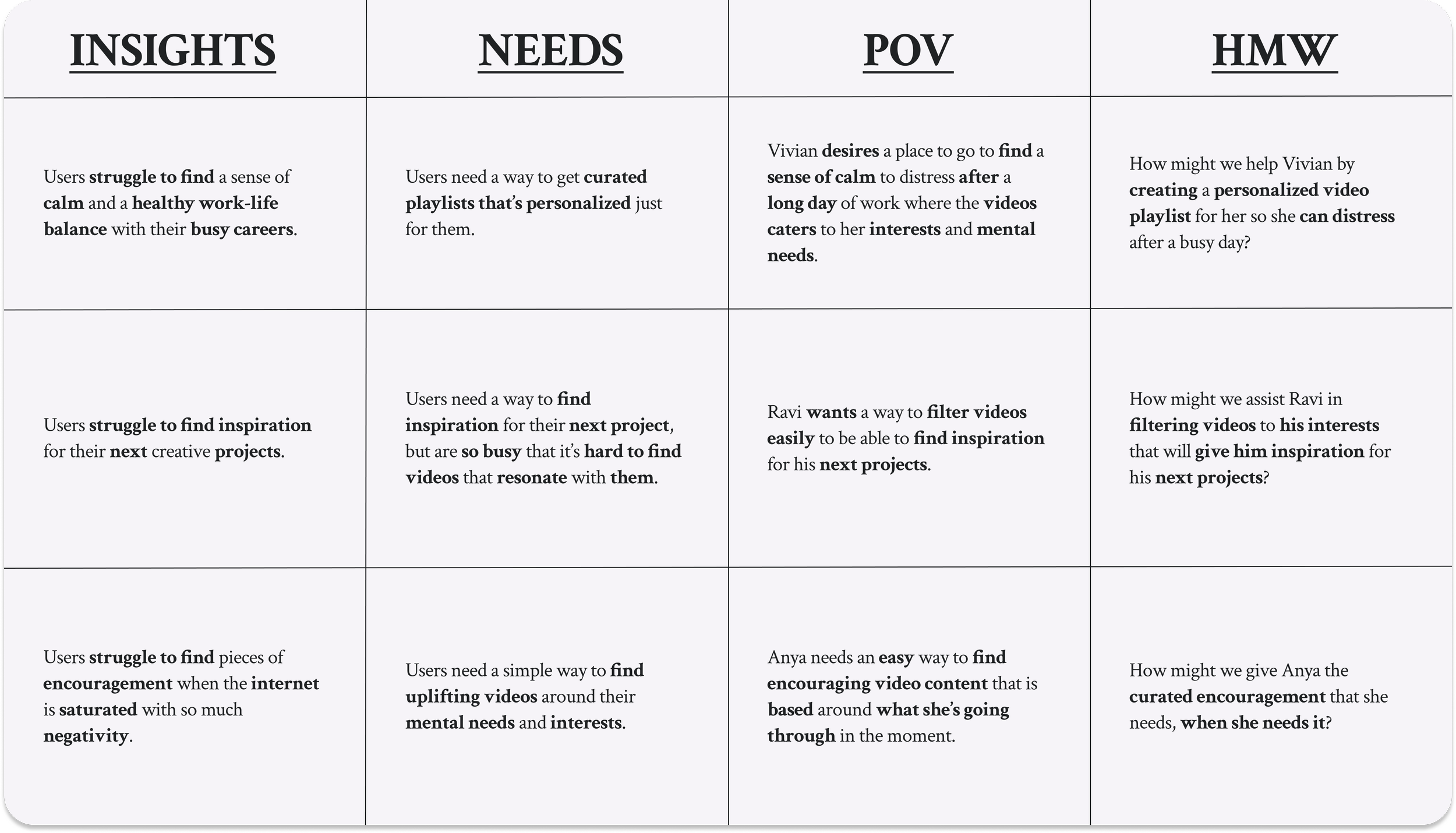 The “Problem Statements” and the “How Might We’s” that I discovered were: